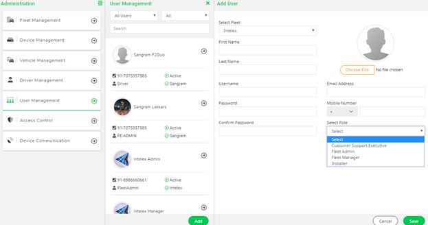 Follow these instructions to create a User profile for your fleet. Once created, all user information may be updated in User management module.